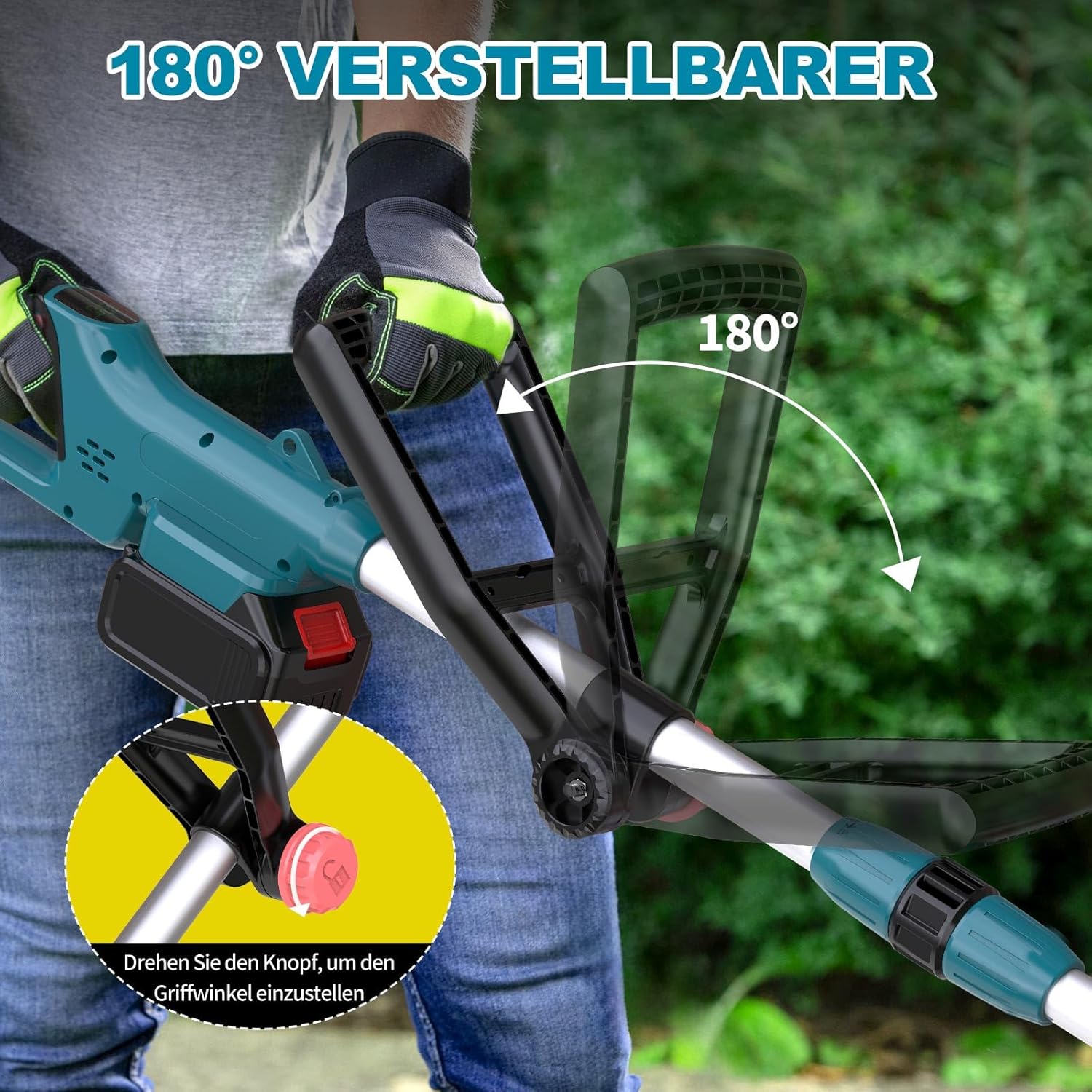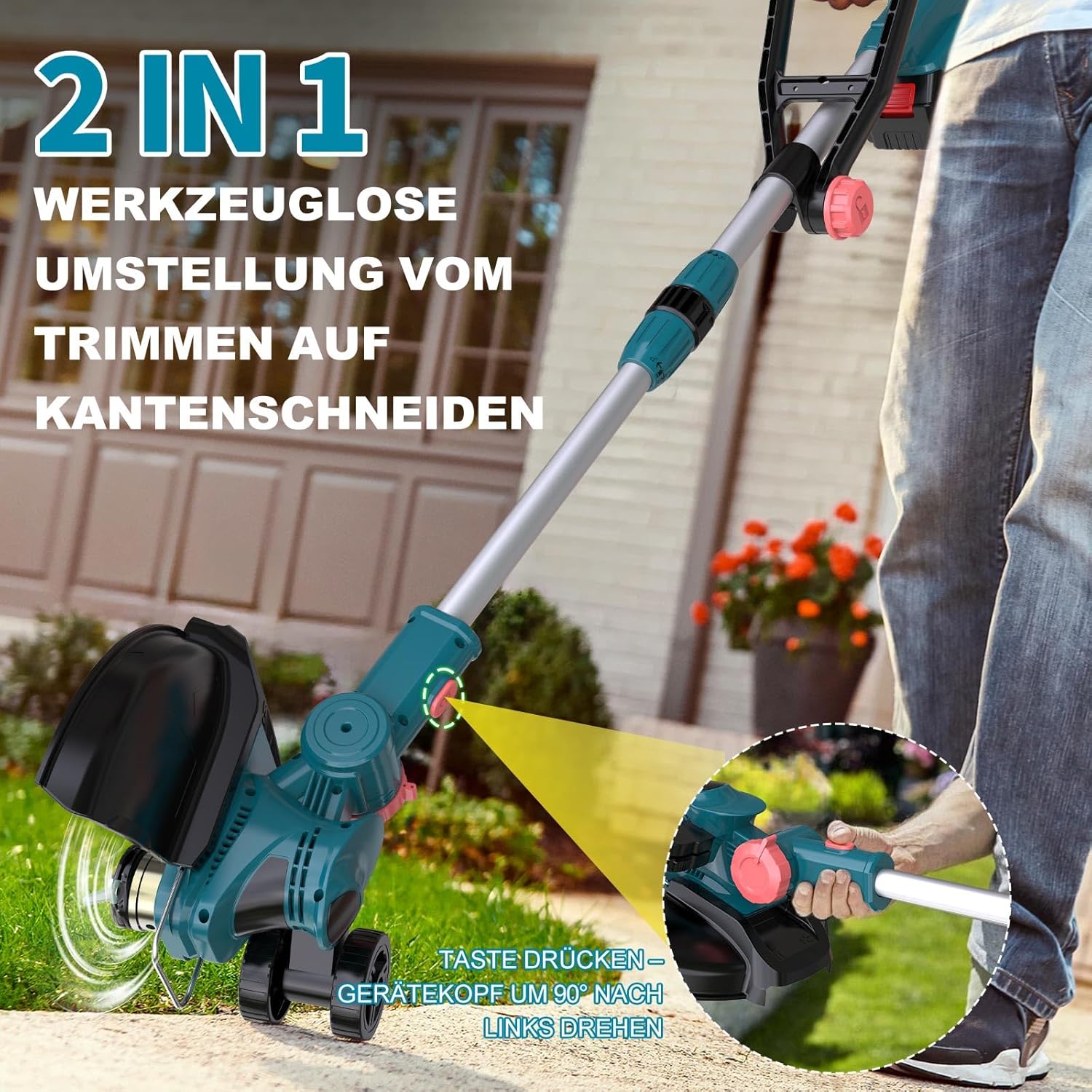 - 2v1 večnamenska uporaba: Enostavno preklapljanje med košnjo trate in preciznim robilnikom s hitrim zavrtom ročaja za 90°.