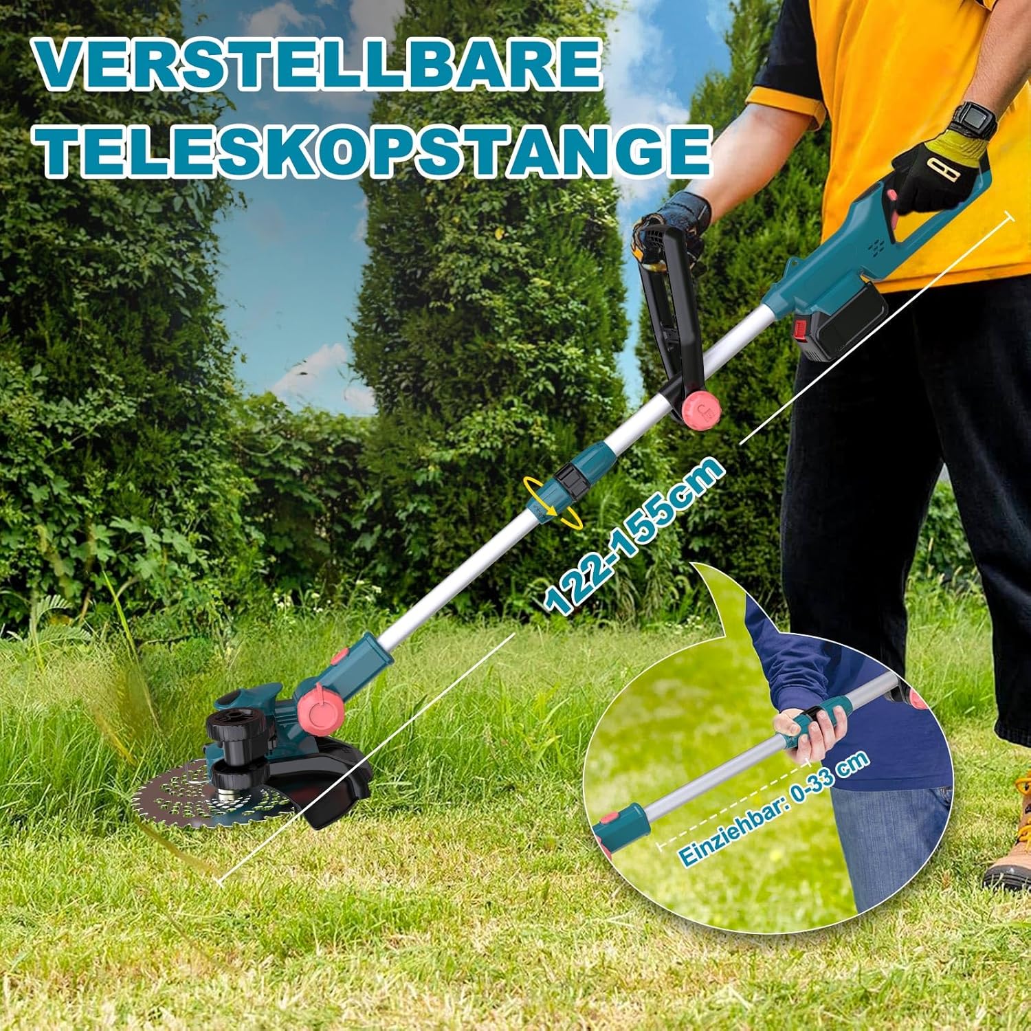 - Telescopska palica: Nastavljiva dolžina za udobno delo vseh postav.