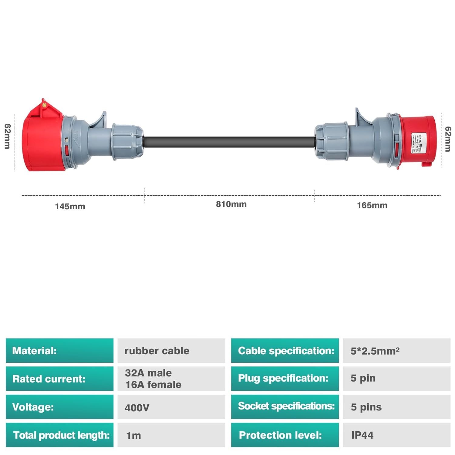 Jadeshay industrijski CEE adapter 32A moški na 16A ženski, 1m