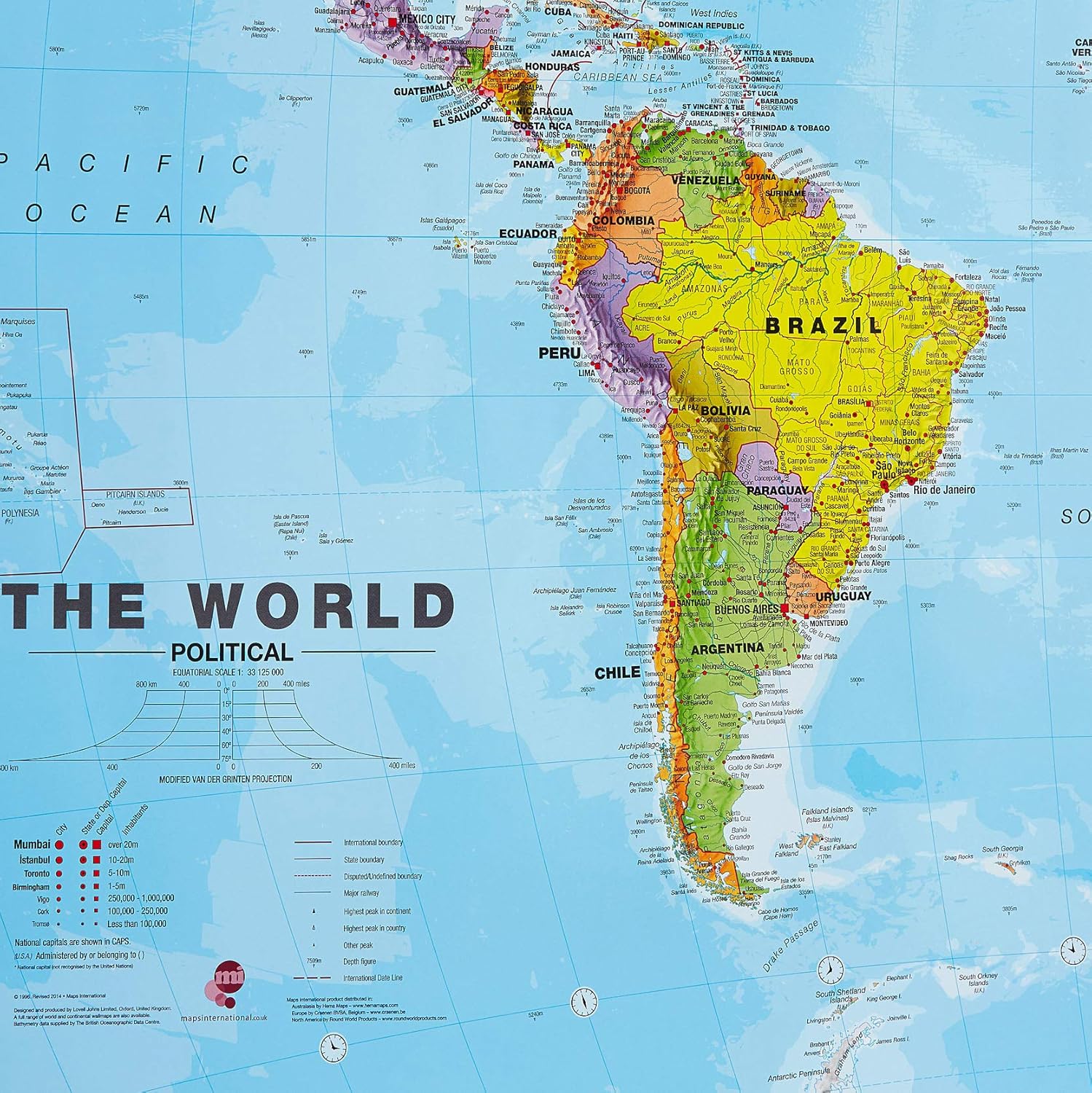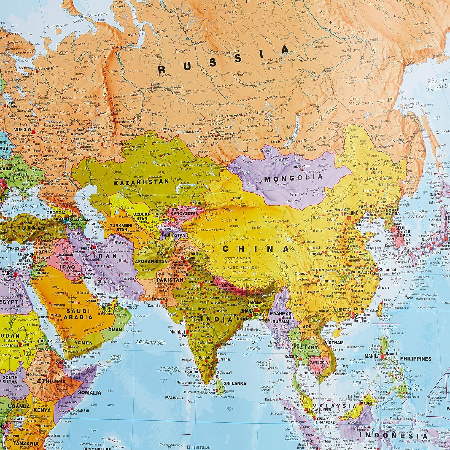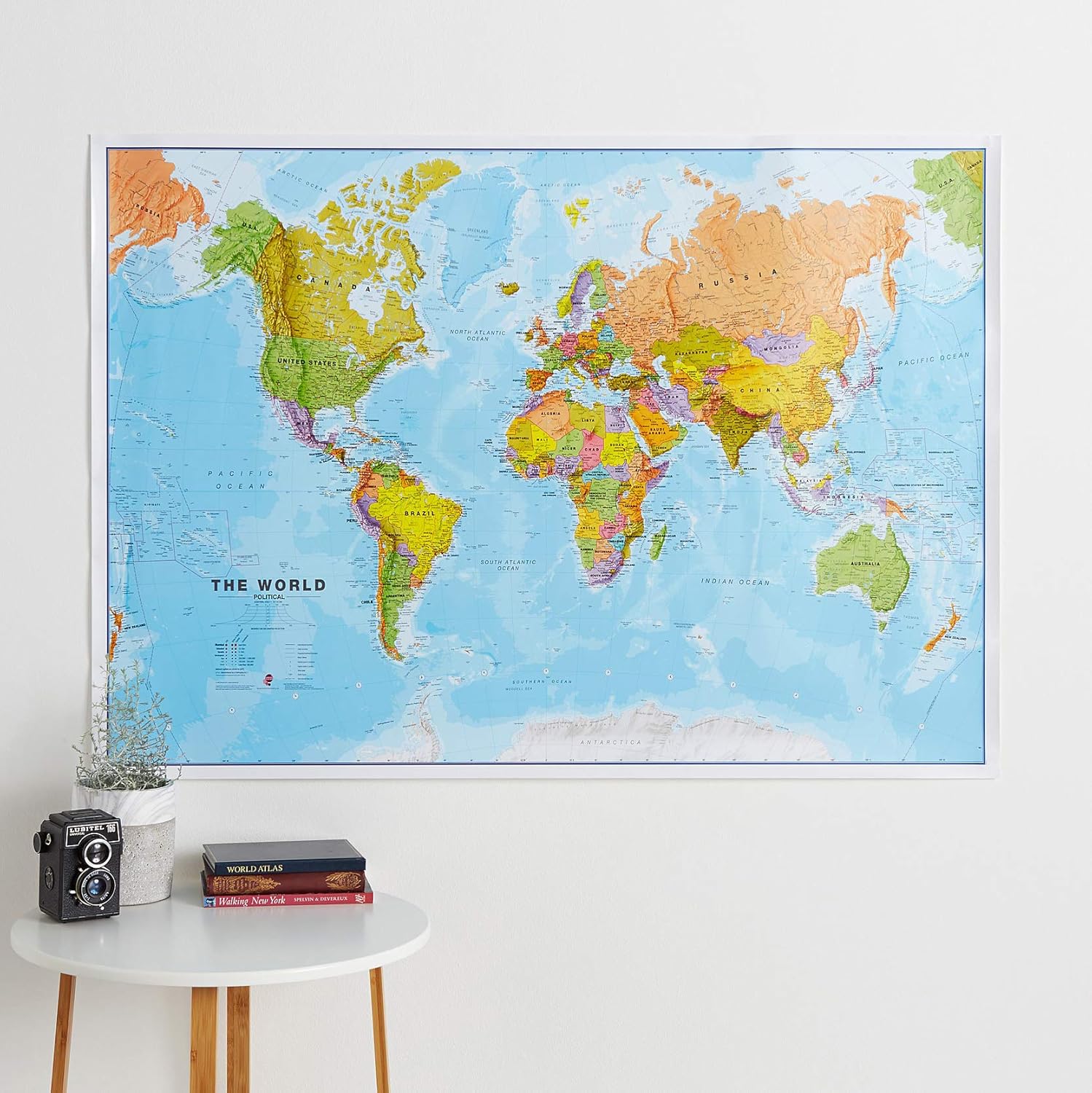 Popestrite vsak prostor z vrhunskim političnim zemljevidom sveta velikosti 119 x 84 cm. Ta velik laminiran zemljevid je odličen za učilnice, pisarne ali prostorne dnevne sobe. Sodoben dizajn prikazuje države v različnih odtenkih, zato se skladno dopolnjuje z vsakim ambientom.